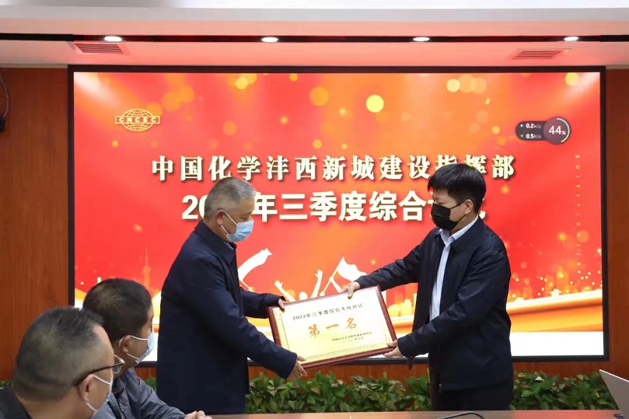 近日,中國化學灃西新城建設指揮部召開2022年四季度施工生產安全工作會。會上,華東公司西咸新區項目部獲“2022年三季度綜合考核評比第一名”。