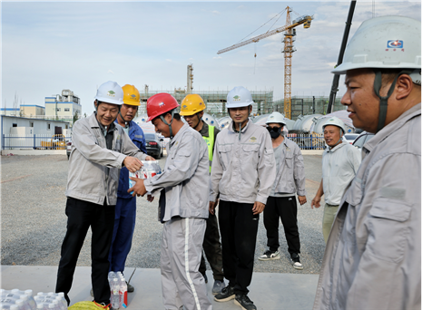 近日,江西公司積極開展“工會送清涼 防暑保安康”主題活動,為在山東裕龍石化儲運項目、內蒙古 PVB 項目等一線高溫環境下施工的員工送去清涼與慰問,囑咐他們在抓好項目建設的同時,認真做好防暑降溫工作,科學合理安排工作時間,避免高溫時段戶外作業,確保安全、順利、高質量完成建設任務。