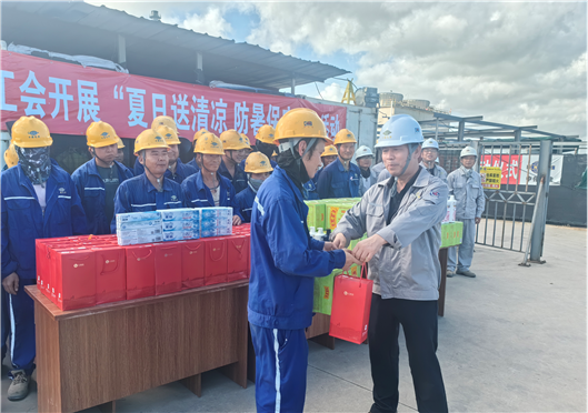 近日,華南公司工會赴廣州萬力輪胎、天津??松|粵化學、廣州市政污水等項目開展“夏日送清涼 防暑保安康”活動,為奮戰在一線的職工送去了絲絲清涼,代表公司獻上一份誠摯的關懷。華南公司工會根據天氣情況,以職工需求為出發點,在防暑降溫季不定期開展“夏送清涼”相關活動,做實“工會服務”,傳遞“工會溫度”,發揮“工會力量”,把公司對廣大職工的關愛傳遞到每一位職工的心坎上,提高職工幸福感,鼓舞了職工工作熱情。