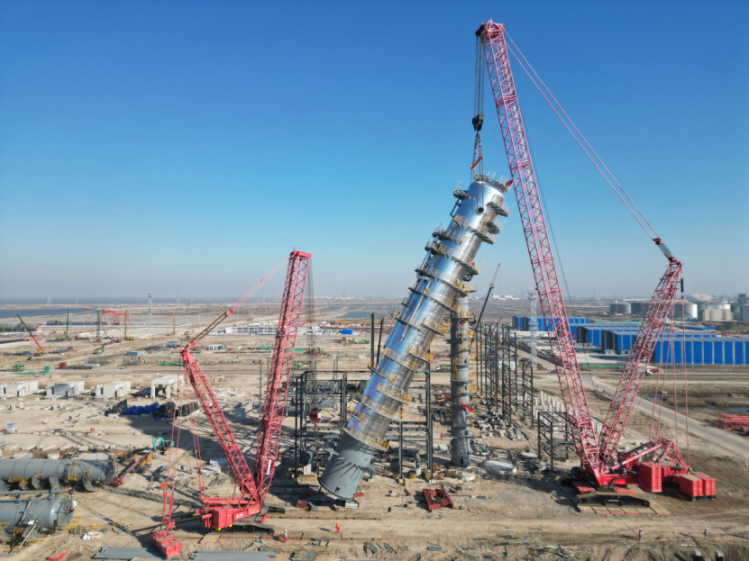 該項(xiàng)目位于河北滄州渤海新區(qū)港城區(qū)石化產(chǎn)業(yè)區(qū),自開工建設(shè)以來(lái),項(xiàng)目部錨定“高標(biāo)準(zhǔn)、高質(zhì)量、高效率”履約目標(biāo)推進(jìn)工程建設(shè)。此次吊裝的分餾塔是項(xiàng)目核心關(guān)鍵設(shè)備,高61.6米、直徑6.4米,重274噸,具有吊裝難度大、技術(shù)要求高、安全風(fēng)險(xiǎn)高的特點(diǎn)。